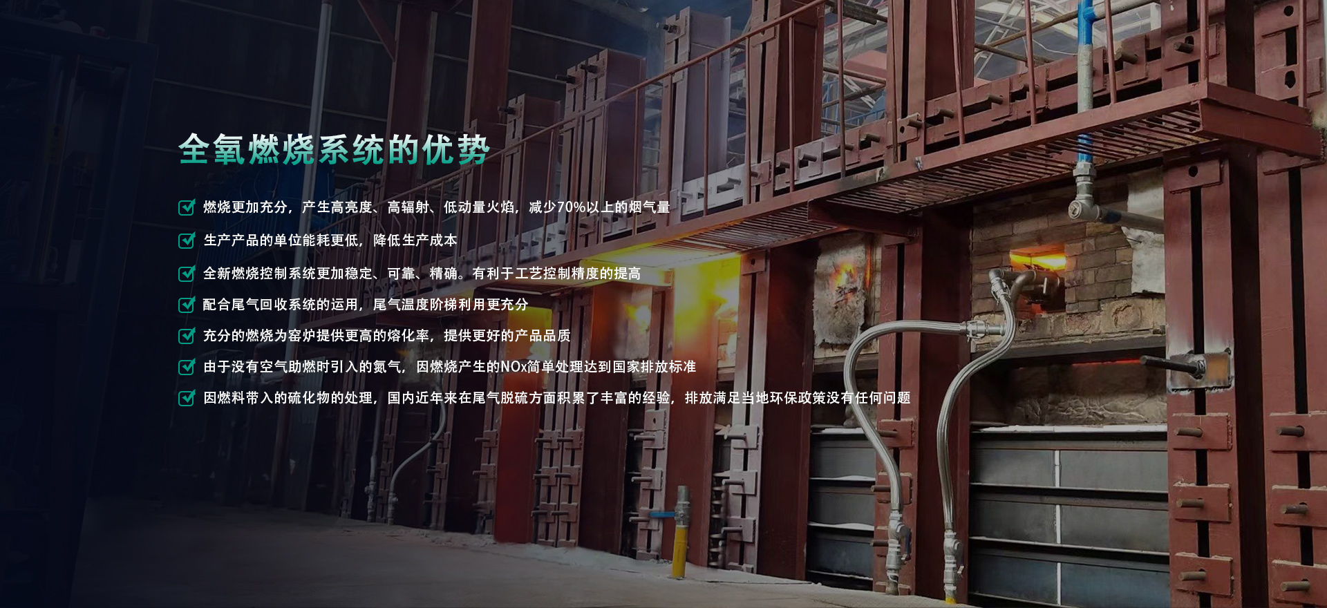 提供方案:成套熱能解決方案。高溫領(lǐng)域,采用全氧或富氧燃燒系統(tǒng),包含全氧燃燒器、燃?xì)?氧氣管路系統(tǒng)以及自動(dòng)化控制系統(tǒng)